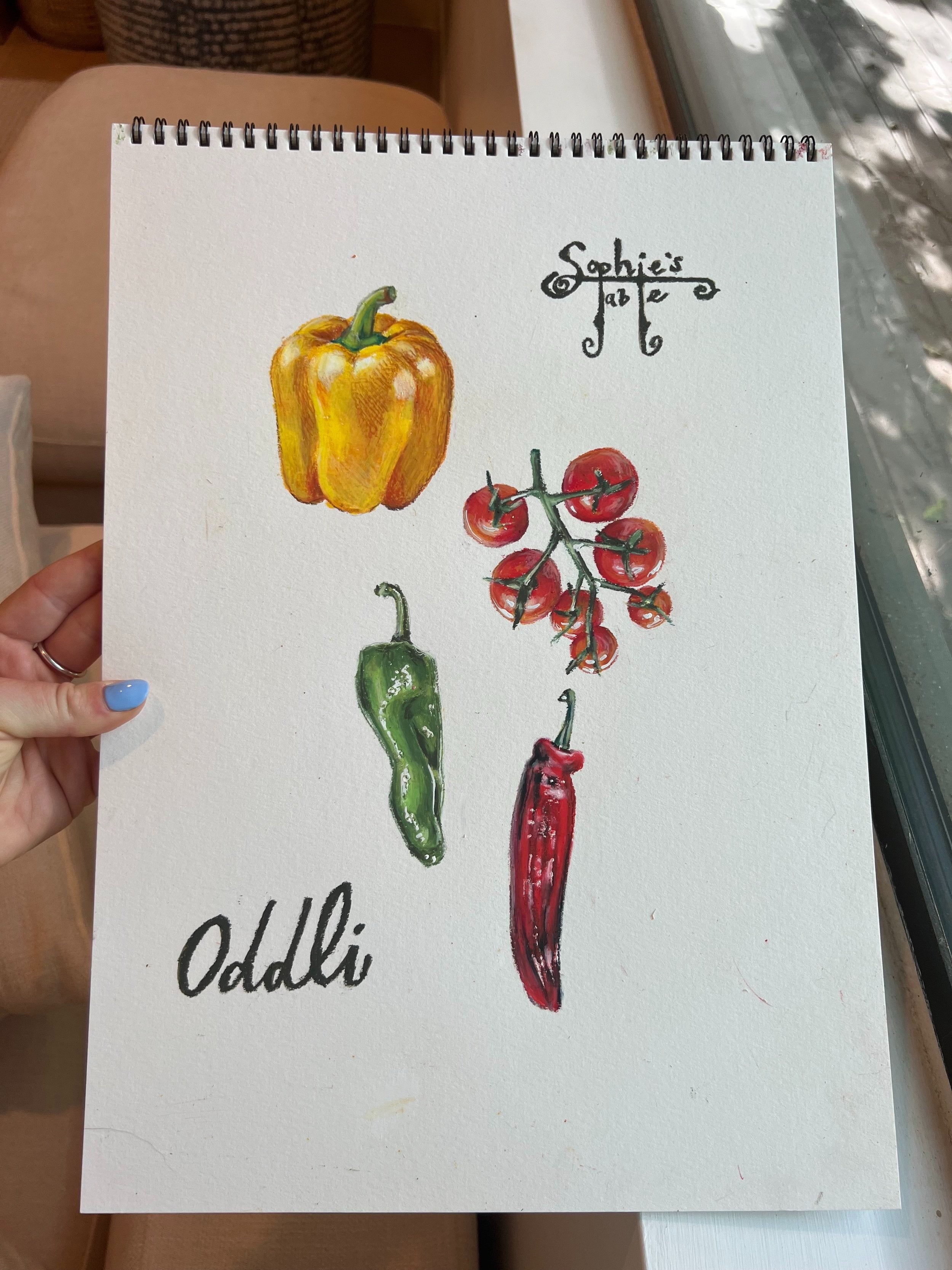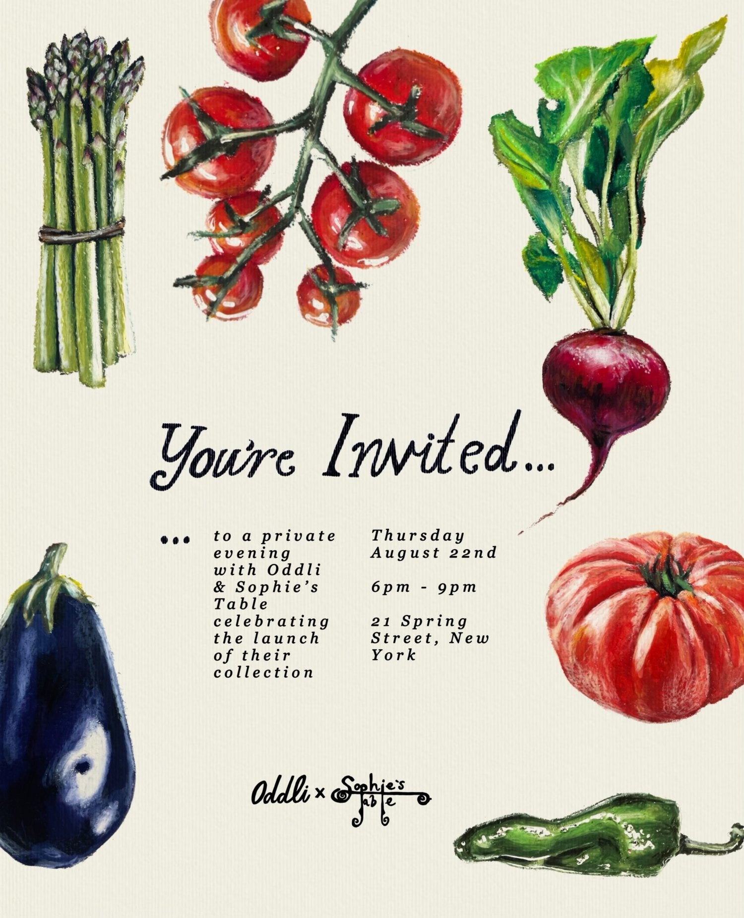 I was hired by Oddli, a Los-Angeles based clothing brand, to create custom illustrations to be used for a scarf design that they released in collaboration with Sophie’s Table, a food and drink page curated by Sophie Dalah. The scarf was available for sale in person at Oddli’s pop-up shop in New York and on oddli.com. My illustrations were also used as decorative elements for a private Oddli event celebrating the brand collaboration.