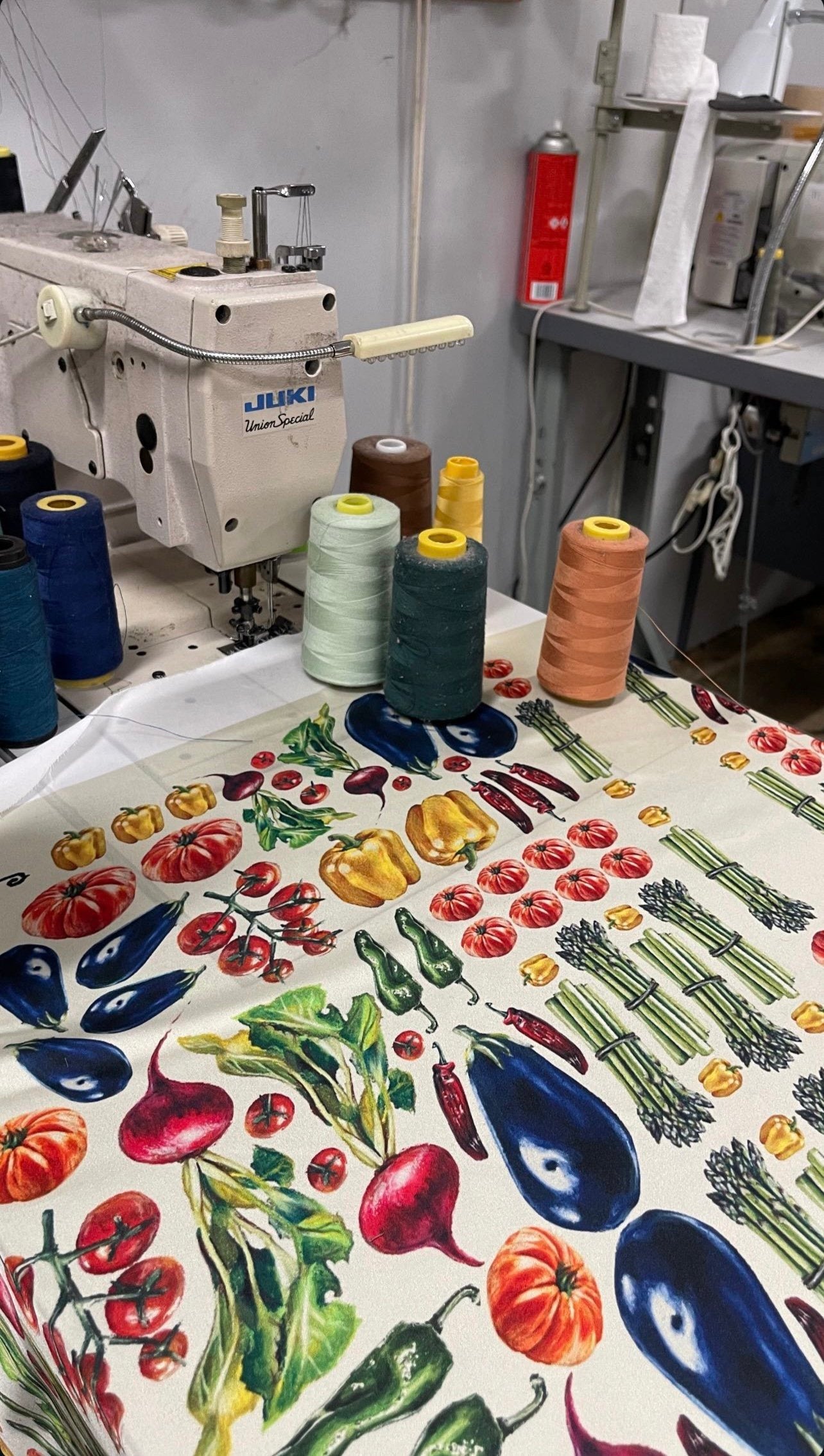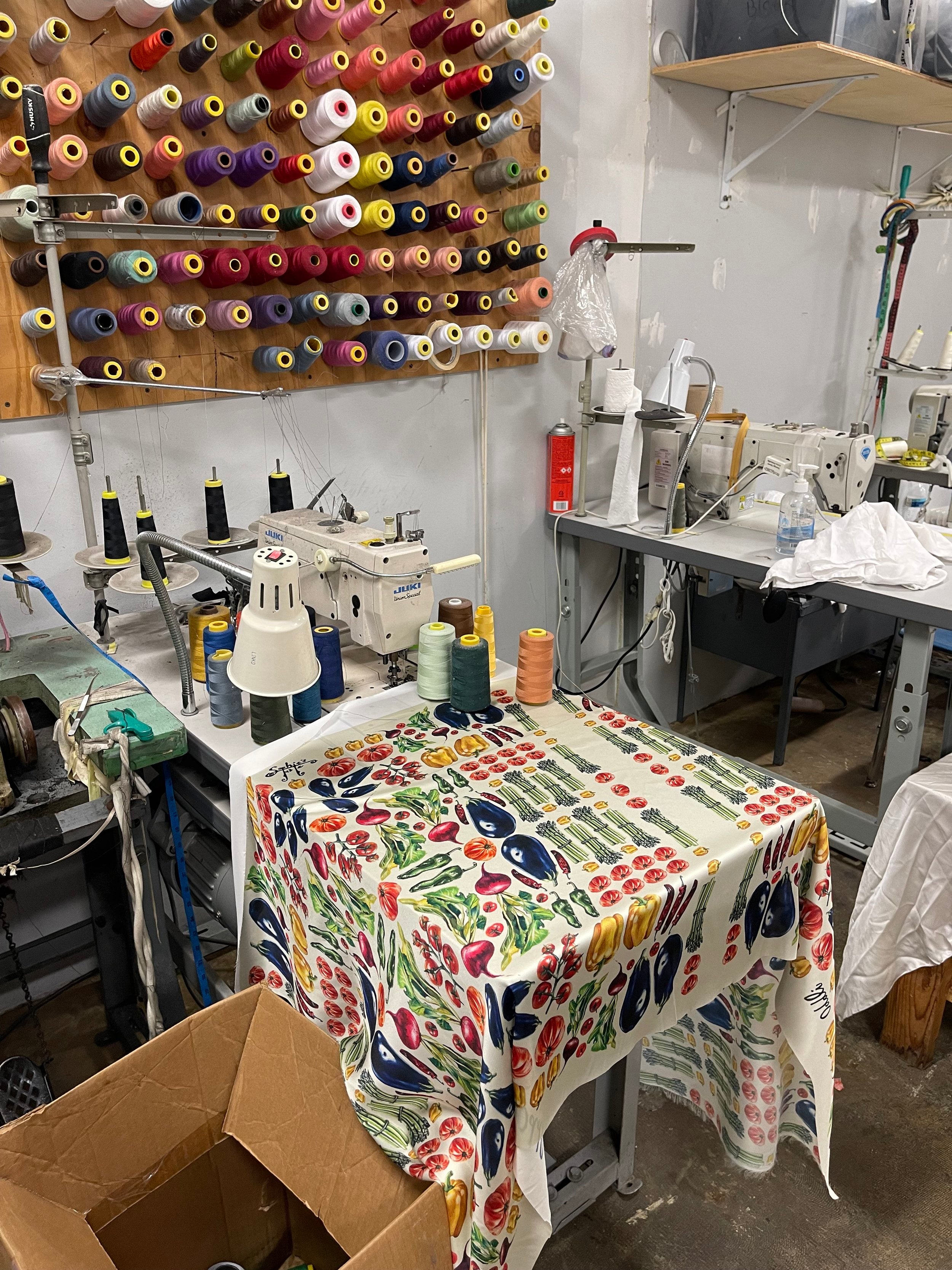 Oddli x Sophie’s Table scarf in production in Los Angeles, California.